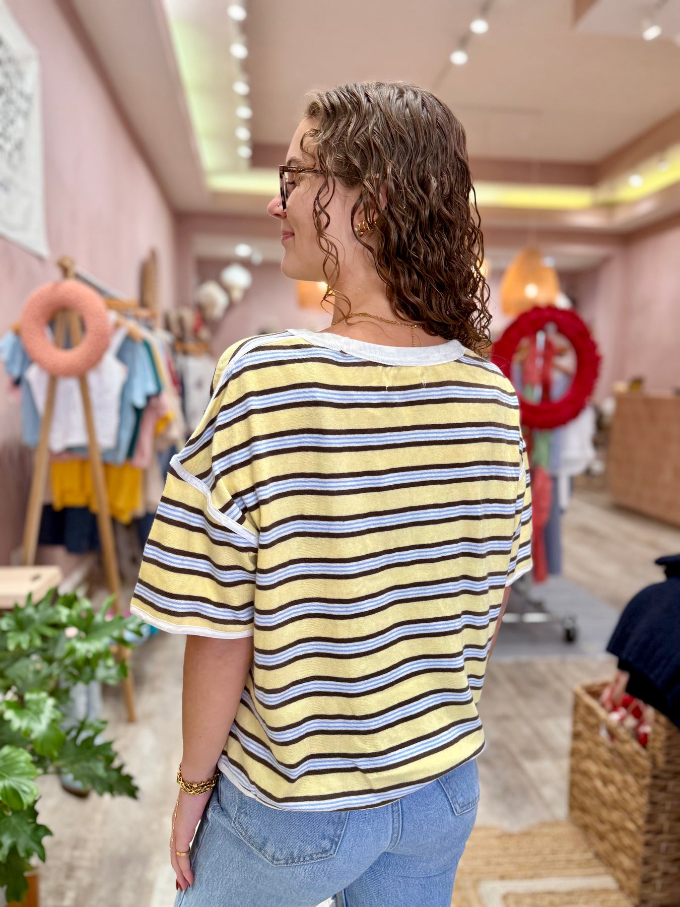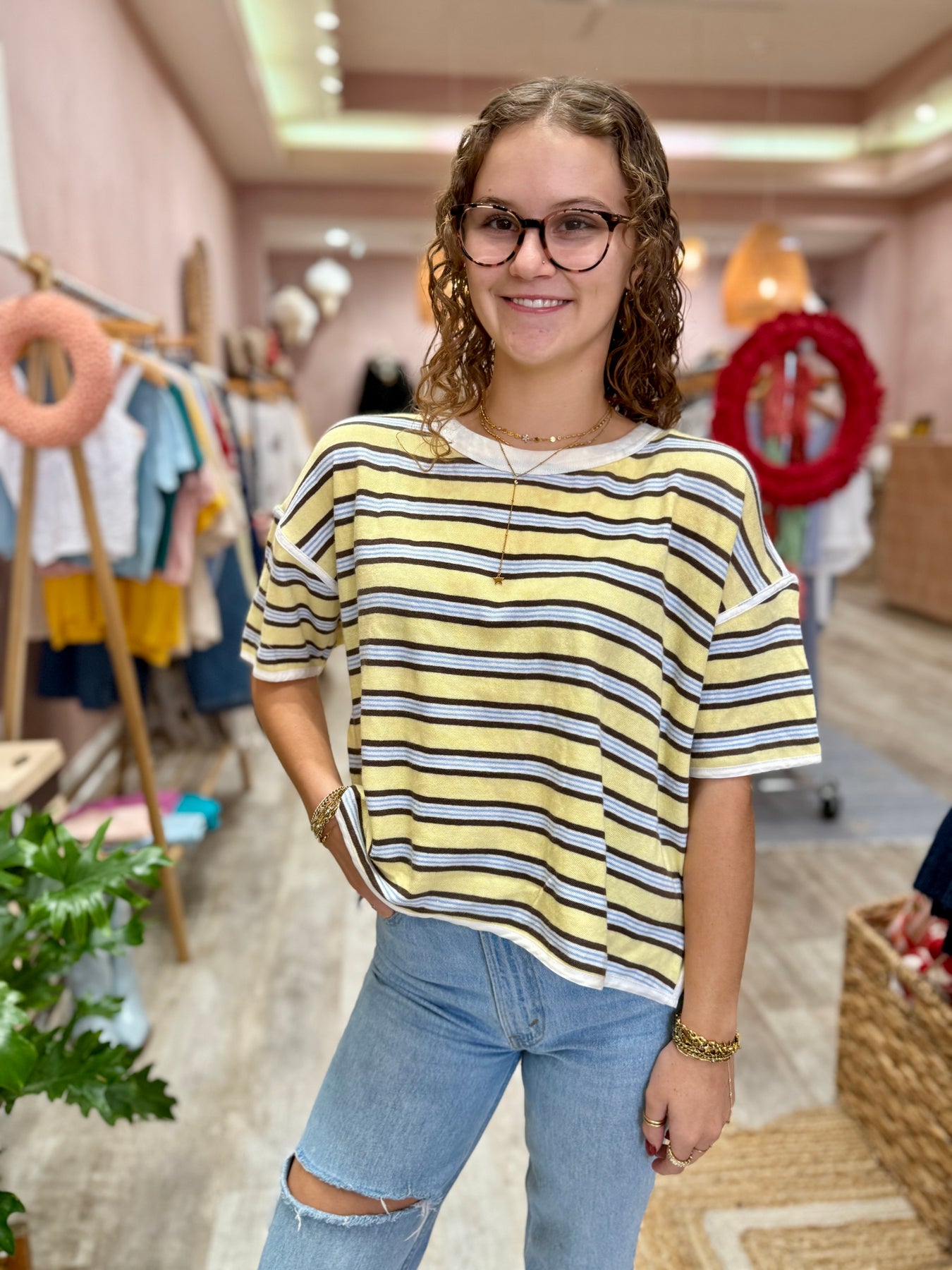 Sporty, retro, comfy–we’re bringing all of our favorite vibes into one tee with this staple option from We The Free, featured in a cropped, boxy fit with a fun striped print and extra wide short sleeves.